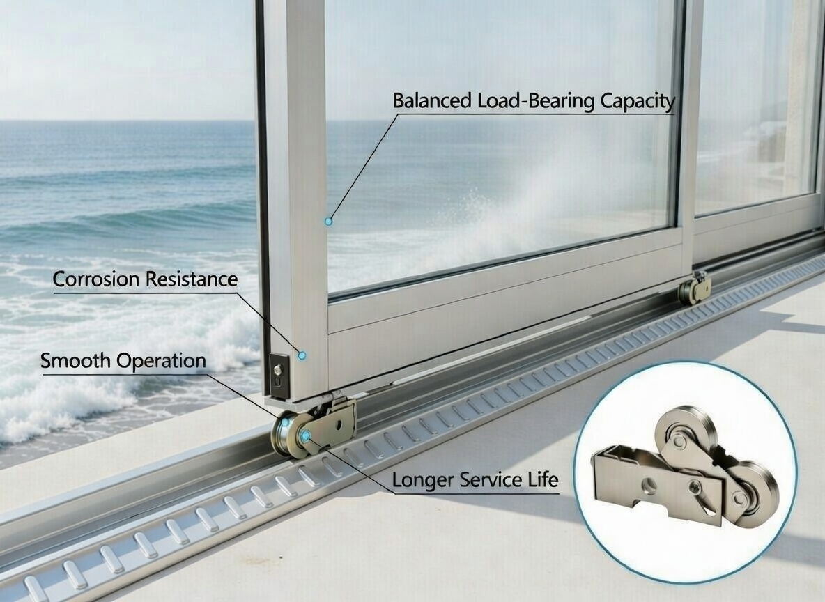 Banyak keluhan pintu geser—terseret, tergores, "terjebak di tempat yang sama"—berhubungan dengan keausan. Rakitan tahan karat tandem cenderung bertahan lebih lama karena dapat menangani beban dan serpihan dengan lebih baik, terutama bila dipasangkan dengan bantalan bola.