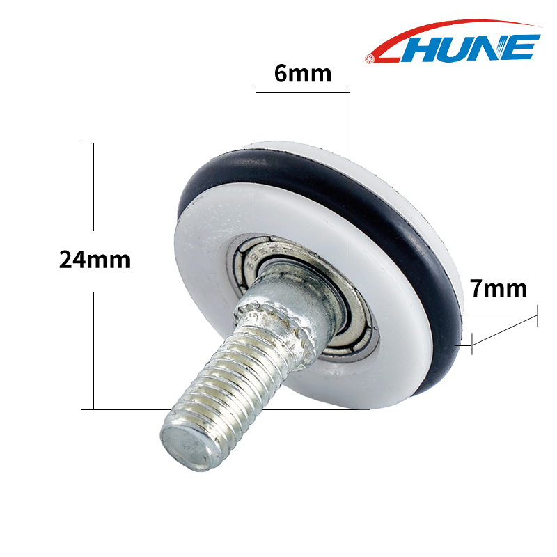 Alur sempit berbentuk U dengan poros lemari pakaian yang dilapisi karet Katrol Bantalan Ulir Sekrup – solusi kompak dan berkinerja tinggi yang dirancang untuk pengoperasian yang lancar dan andal dalam sistem lemari pakaian dan aplikasi geser serupa. Menampilkan desain alur sempit berbentuk U yang presisi, katrol ini memastikan gerakan yang pas dan stabil di sepanjang lintasan, meminimalkan goyangan atau ketidaksejajaran.